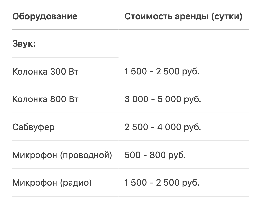 - 2 колонки по 500 Вт — 3 000 руб./сутки